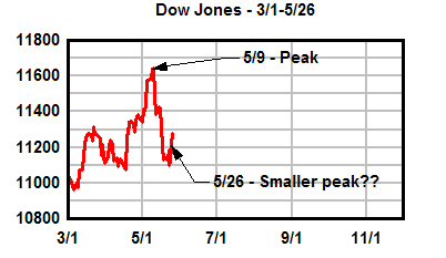 As of Friday, the stock market had reached a peak on 5/9, and appeared to be heading for a smaller peak. |