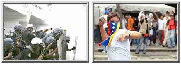 But the pictures aren't from America in the 60s; they're from Venezuela, and they're captured from video taken in the last two days.